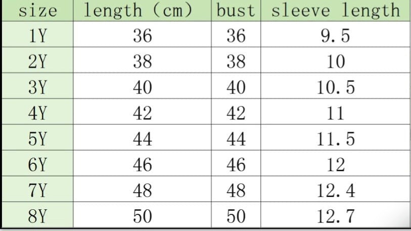 | Size | Length (cm) | Bust (cm) | Sleeve Length (cm) | Pant Length (cm) |